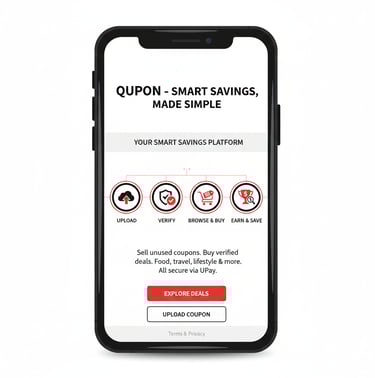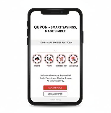 With Qupon, it’s simple: users can upload unused coupons, get them verified instantly, and make them available for purchase at attractive prices. Buyers can discover amazing deals across categories like food, travel, lifestyle, and more, all in one secure and user-friendly platform.